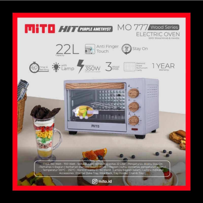 MITO OVEN MO 777- Hit Electrik Oven Listrik 22 Liter Motif Kayu, 350 watt
