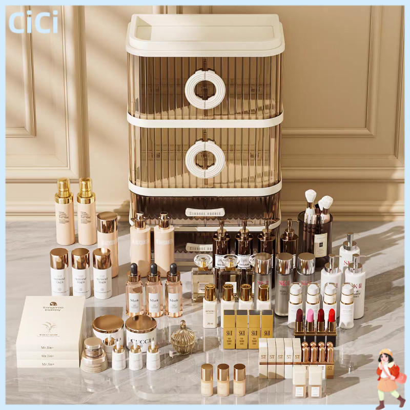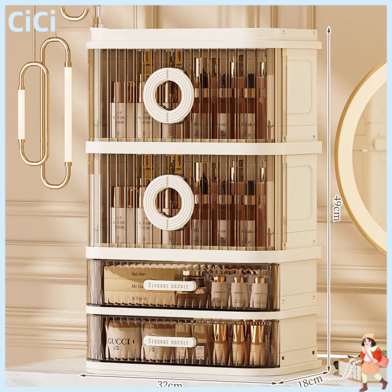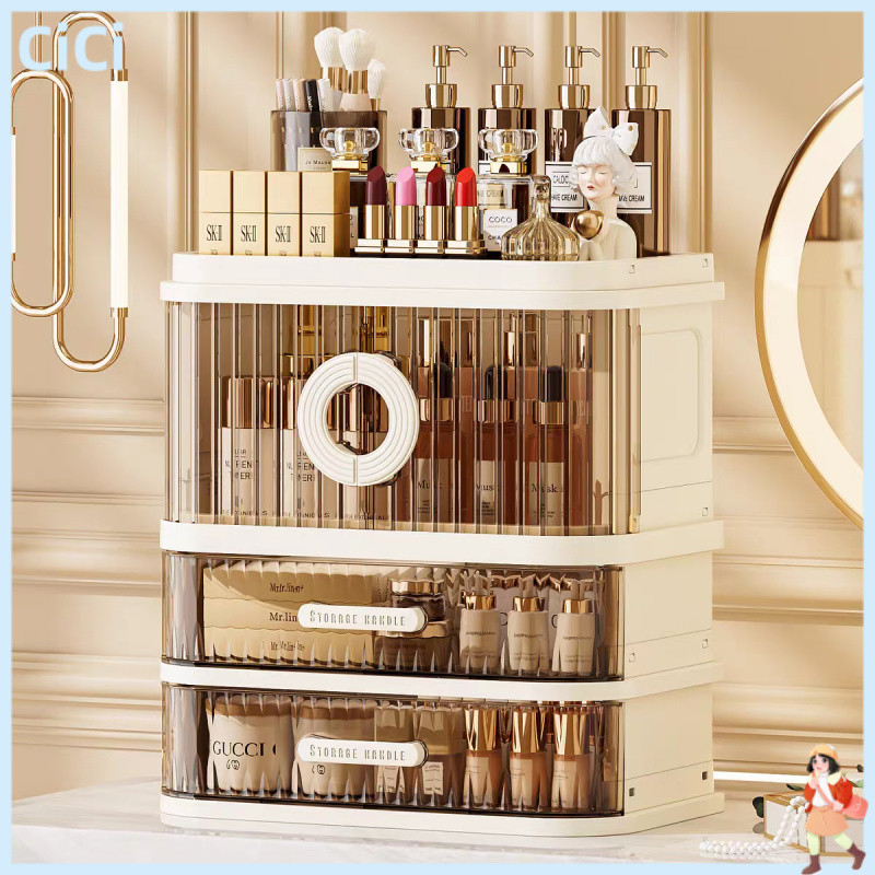 Rak Meja Kosmetik Premium Rak Organizer Make Up Pintu Sliding Box Storage Makeup Akrilik Transparan