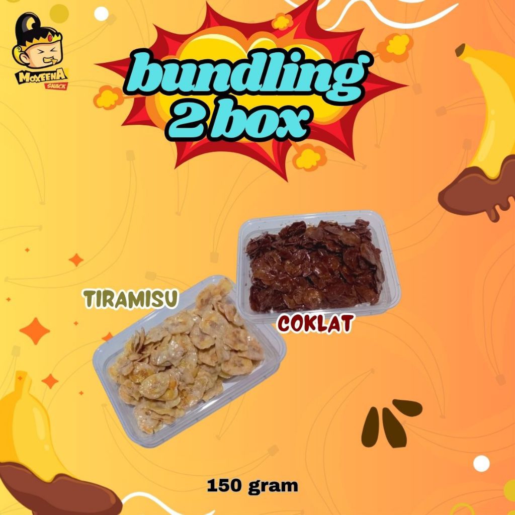 PAKET BUNDLING 2 BOX Kripik Pisang Coklat Lumer 150 gram per kemasan | Kripik Pisang Cemilan Enak cemilan manis