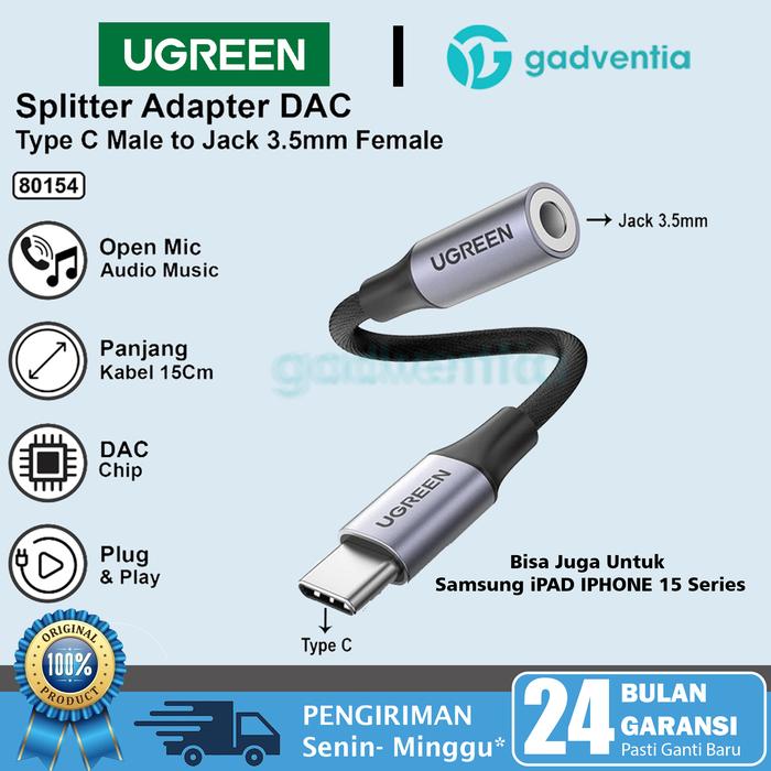 UGREEN SPLITTER CONVERTER IPHONE 15 TYPE C TO JACK 3.5MM DAC OPEN MIC - AUDIO ONLY