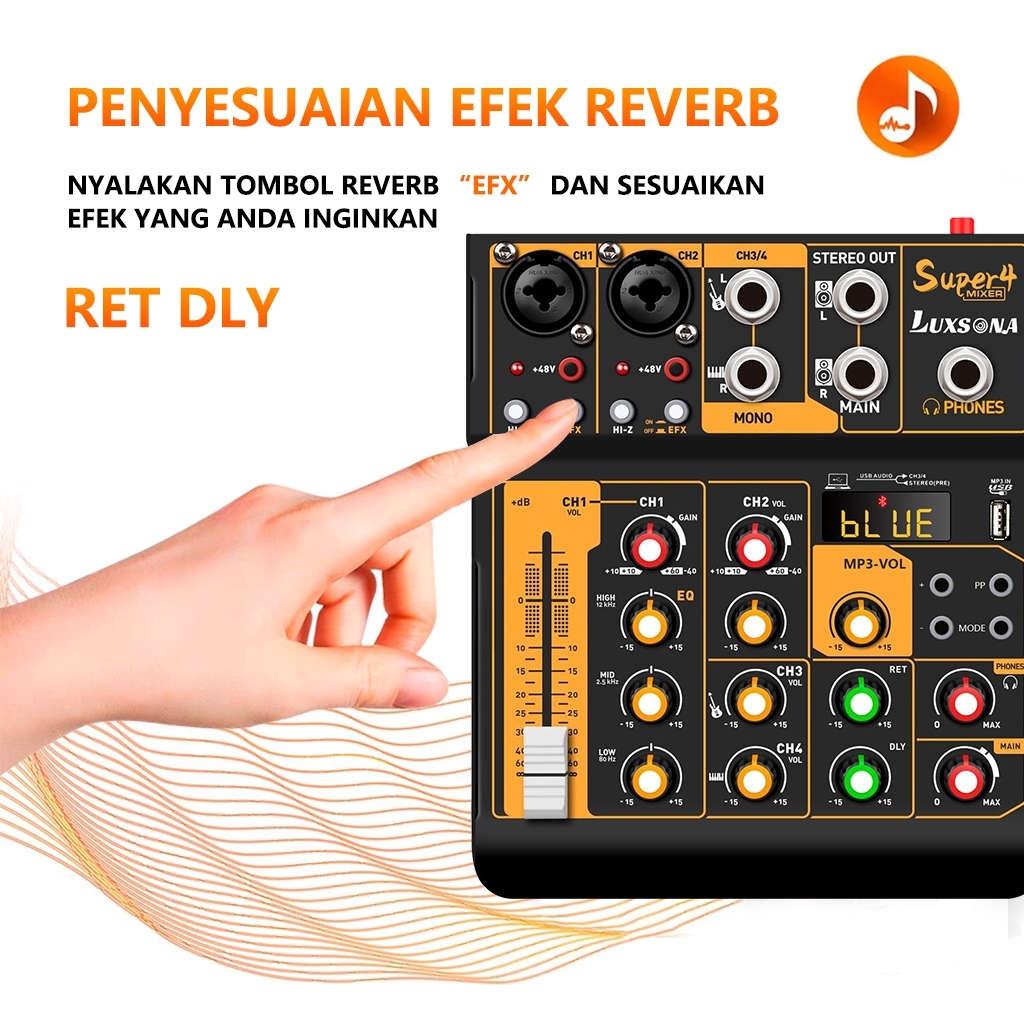LUXSONA Mixer profesional 4 saluran + 2 mikrofon UHF/mixer audio murah/amplifier mini 4 saluran/mikrofon perekaman bluet