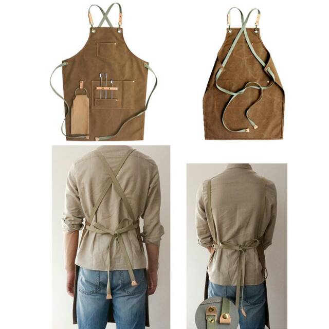 MONOLOG CUSTOM Canvas Leather Apron Celemek Kanvas Barista Waiter Korea Wanita Pria Kitchen Masak