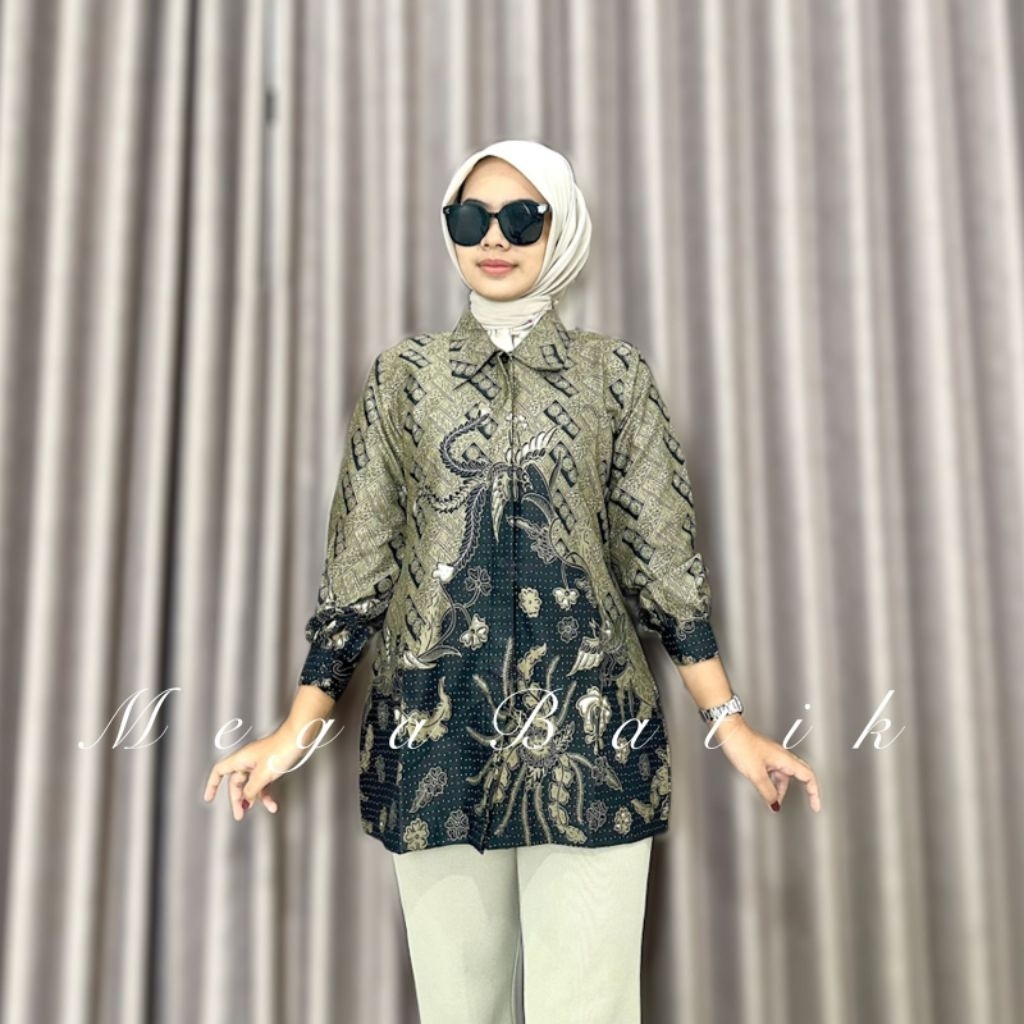 SAKURA Atasan Tunik Batik Wanita Lengan Panjang Bahan Katun Halus - Atasan Baju Batik Kerja Wanita Lengan Panjang - Sera