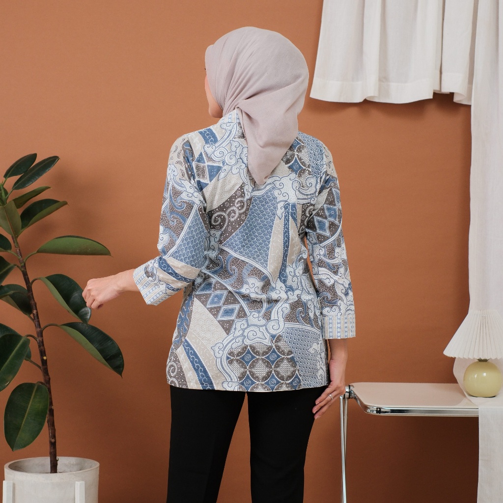DJOWO Batik Kerja Wanita Modern Lengan 3/4 Panjang Motif Davina Series Atasan Kantor Jumbo Terbaru