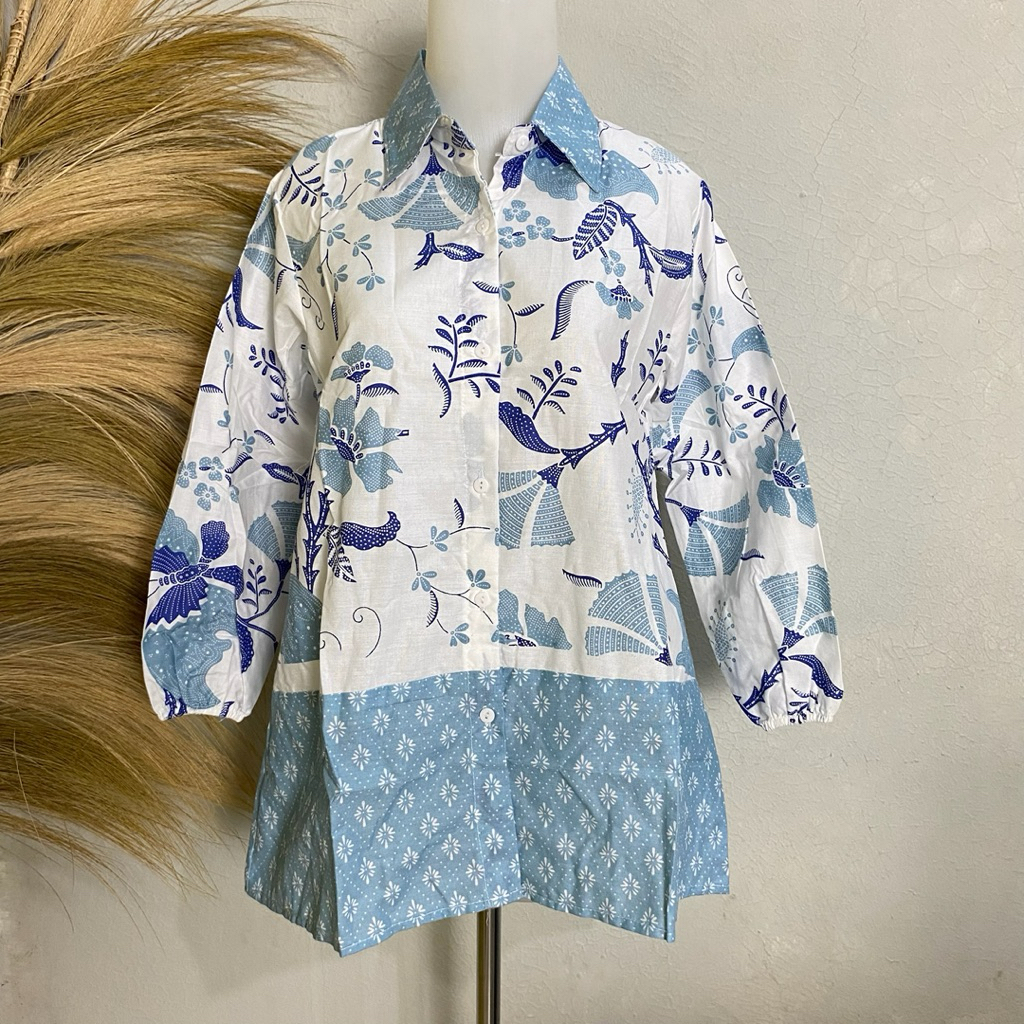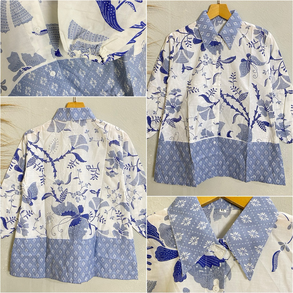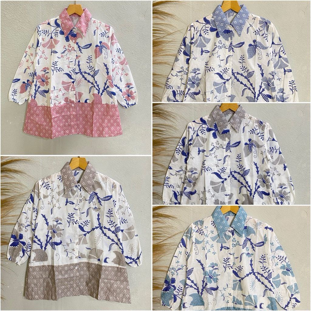 Blouse Batik Kancing Kerah Modern 2 Motif lengan karet