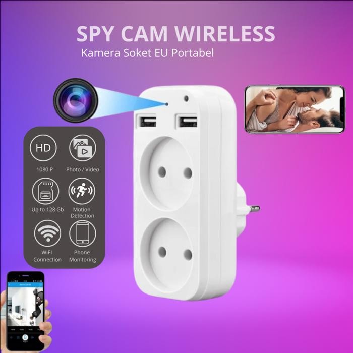 Teknobi Kamera CCTV Mini wireless Socket USB Spy Camera Cam colokan bulat Tanpa Kabel