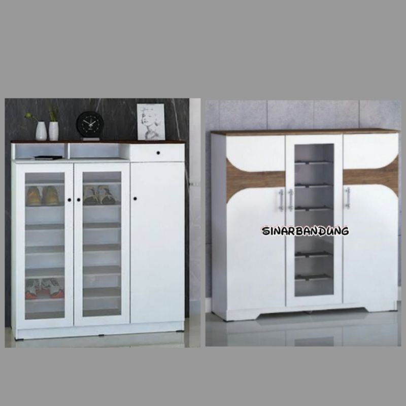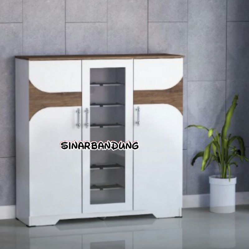 RAK SEPATU PUTIH 3 PINTU MINIMALIS UKURAN BESAR 120CM