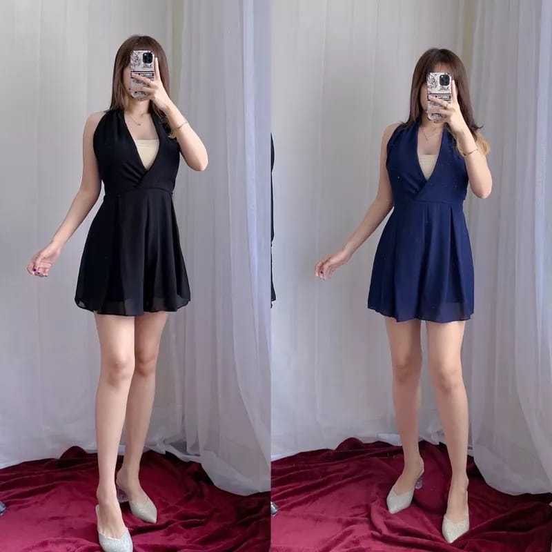 Jade Jumpsuit Wanita V-Neck Polos Sifon Ceruti Berkualitas