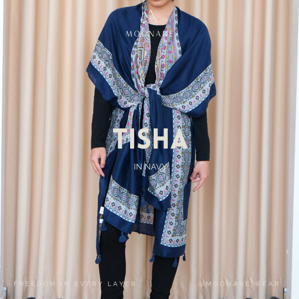 Moonare Wear Outer Batik Wanita Modern Luaran Kekinian Outerwear Kondangan Viscose Premium Tisha Navy