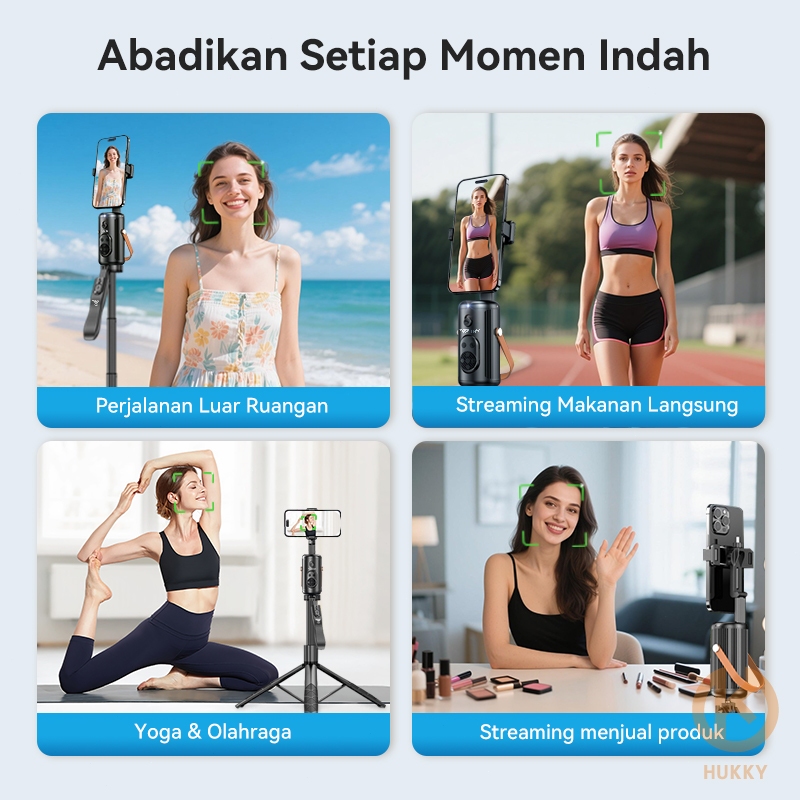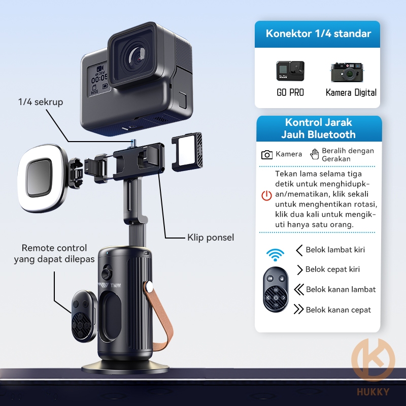 GIMBAL TRIPOD STABILIZER TNW P08 HP AI FACE TRACKING 360° ROTASI HANDPHONE BLUETOOTH STABILIZER SELFIE STICK