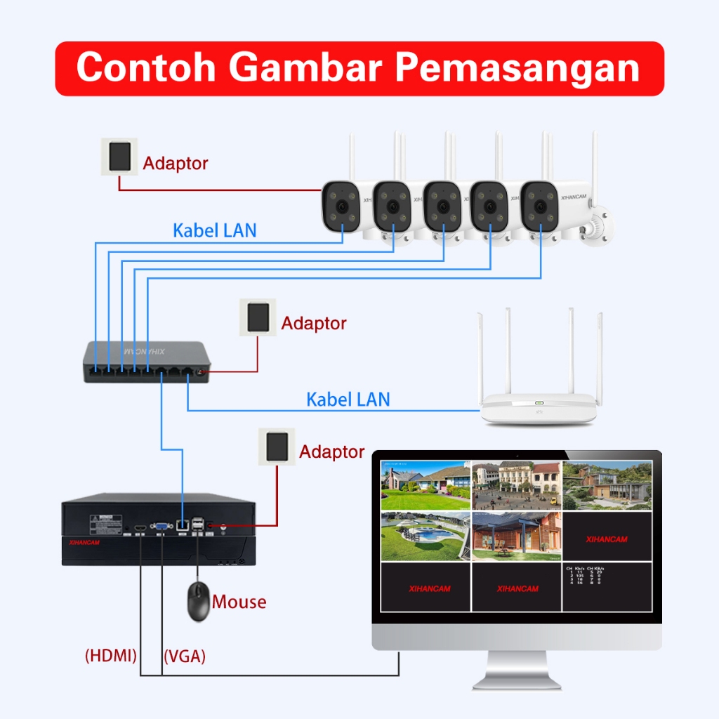XIHANCAM Paket CCTV 8 Channel 8 Kamera 5MP Paket NVR Kamera CCTV 8 Channel Audio Komplit Siap Pasang