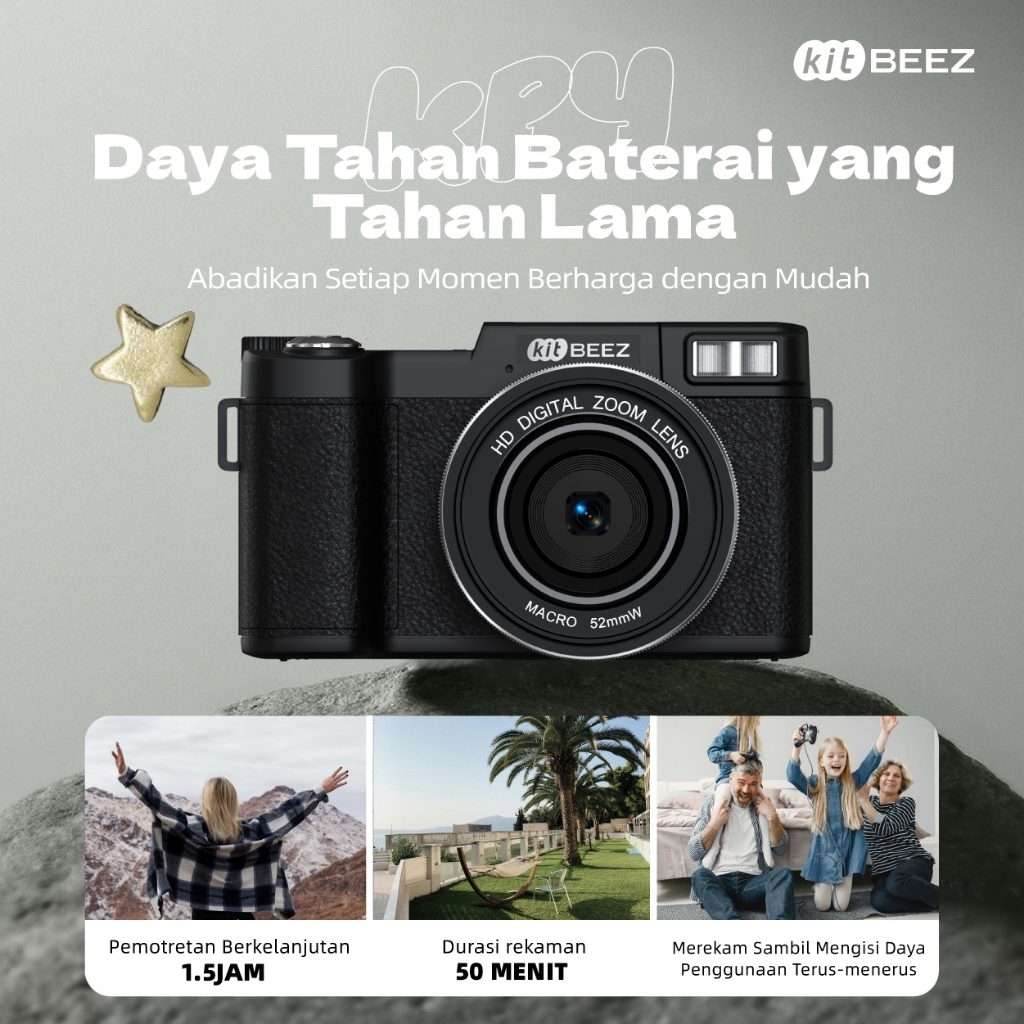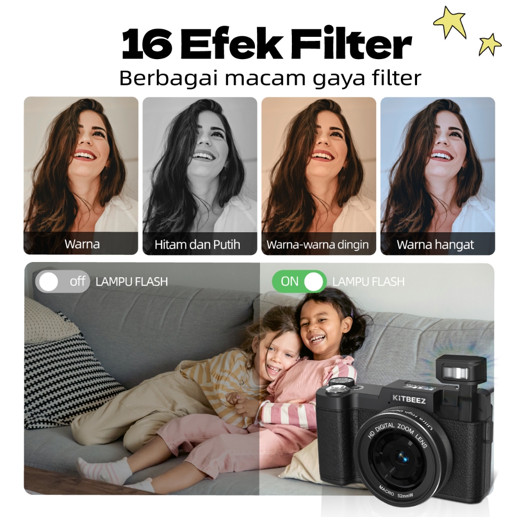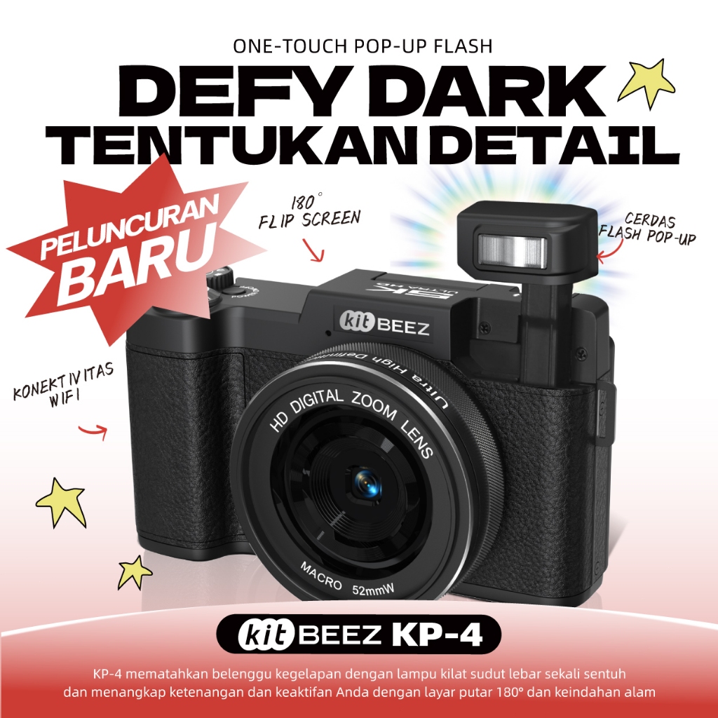 KiTBEEZ KP-4 Kamera Digital WiFi 75MP 5K Putaran 180° Zoom 18x Dukungan Selfie Retro Digicam