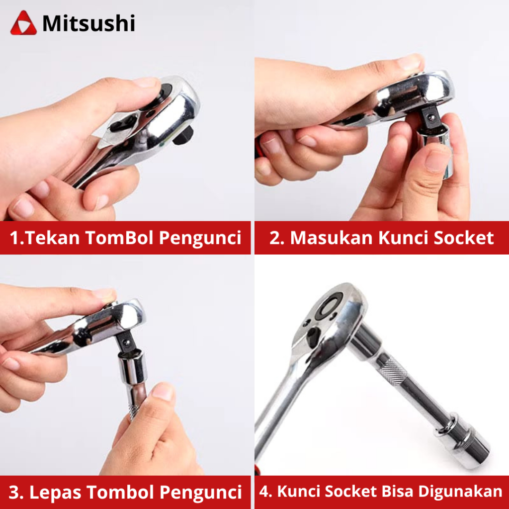 MITSUSHI KUNCI SHOCK SOCKET WRENCH 12 PCS 1/2 INCH 8-24MM MATA SOK FULL SET 1/2'' EXTENTION BAR CHROME KUNCI PAS RATCHET