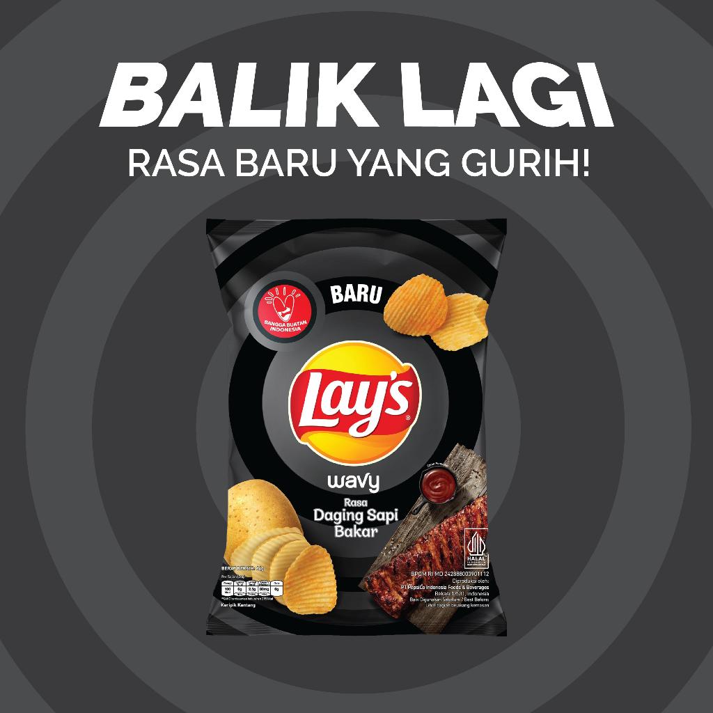 Lay's Wavy Keripik Kentang Rasa Daging Sapi Bakar & Lay's Wavy Keripik Kentang Rasa Ayam Goreng Bawang 64gr - Pack of 4
