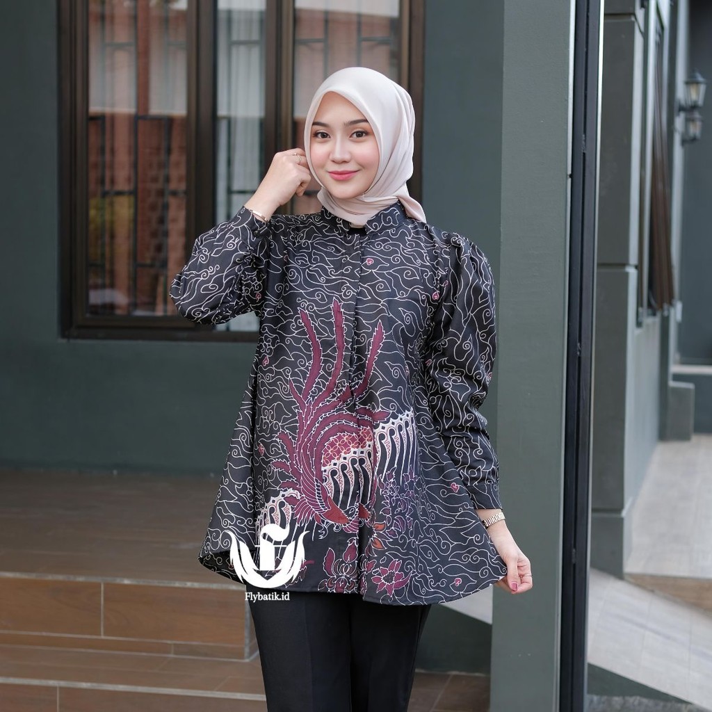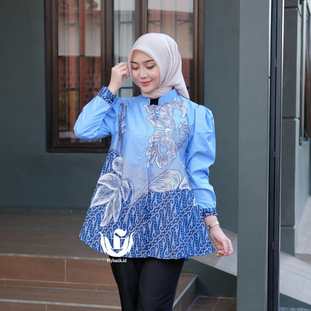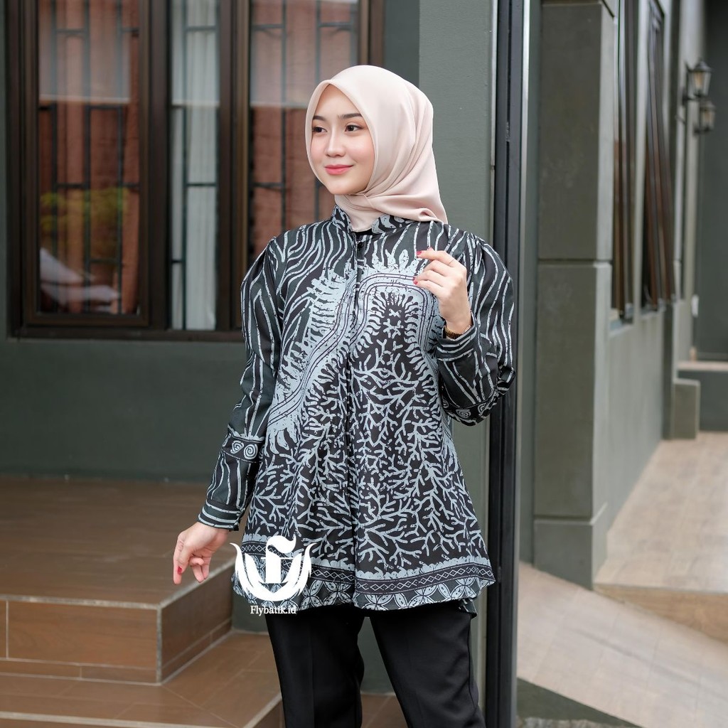 Flybatik.id Atasan Baju Batik Wanita Jumbo Modern Blouse Kerja Kantor Lengan Panjang M L XL XXL