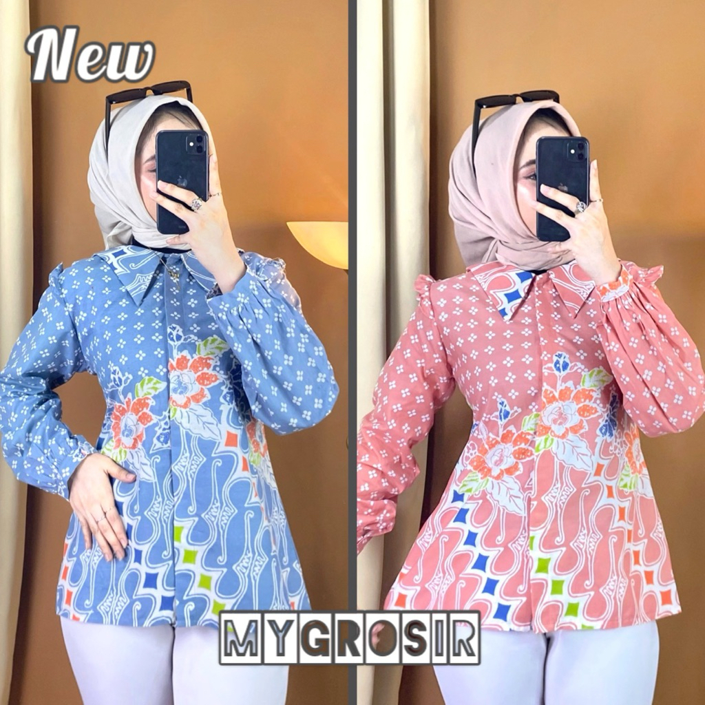 Blouse Batik Wanita Lengan Panjang – Atasan Batik Modern Premium Elegan Kekinian Kemeja Kombinasi Motif Elora choco