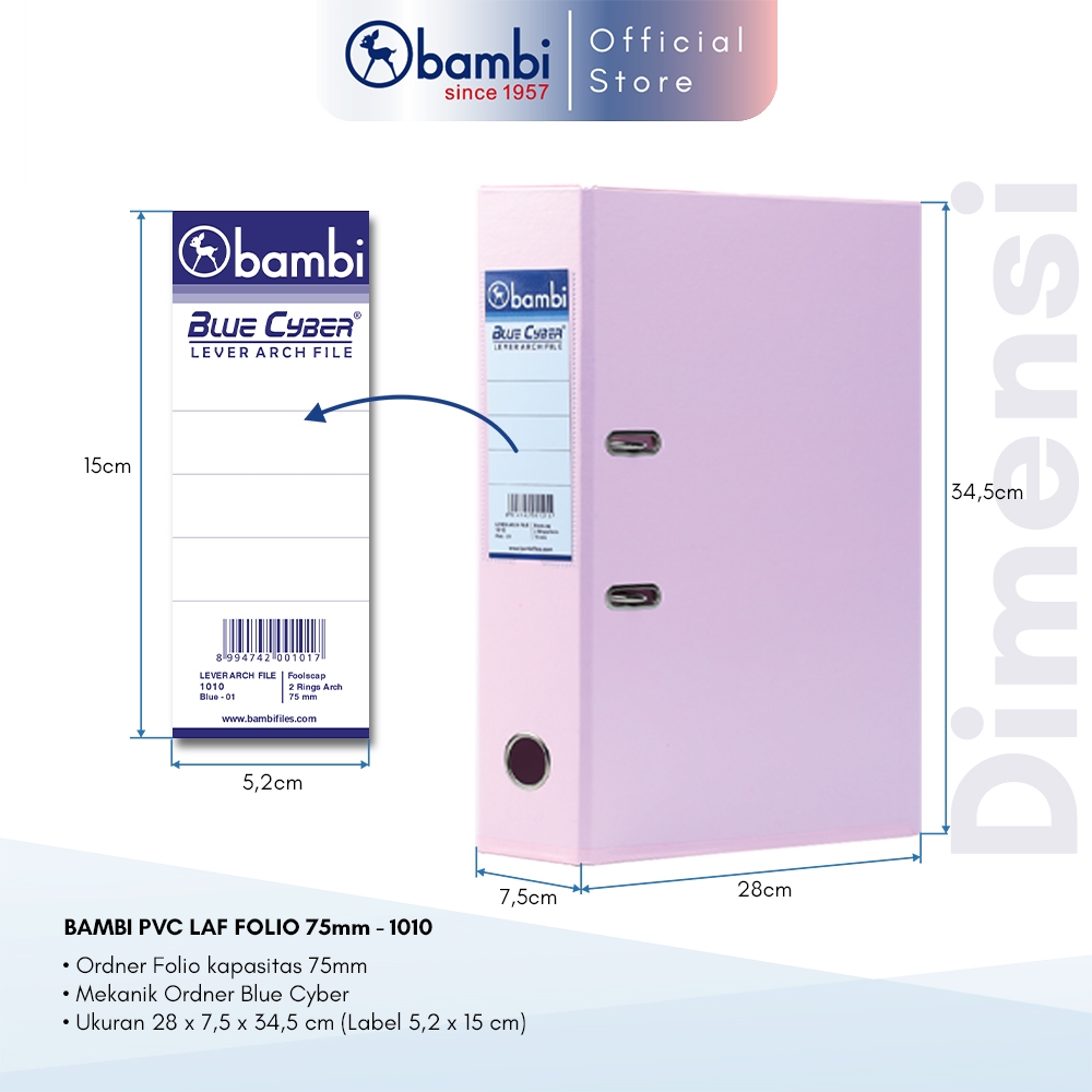 Bambi Lever Arch File Ordner Folio All Color Jumbo Size 75 mm - 1010