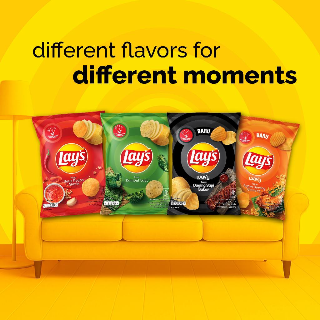 Lay's Wavy Keripik Kentang Rasa Daging Sapi Bakar 64gr - Pack of 3
