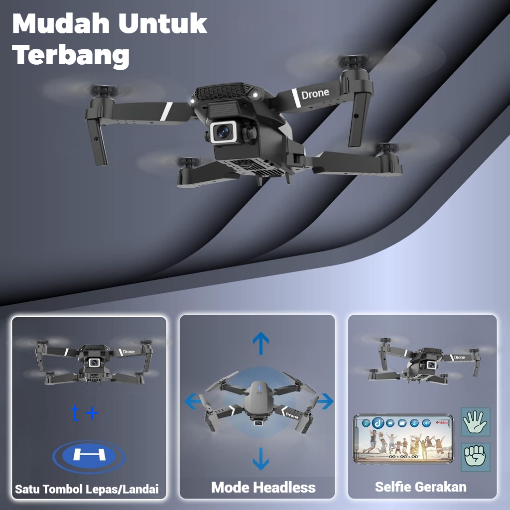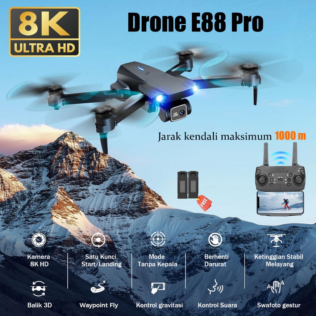 Drone E88 Pro Kamera Jarak Jauh 8K HD GPS Auto Return FPV Live Video Altitude Hold Foldable RC Quadcopter Untuk Pemula Fotografi