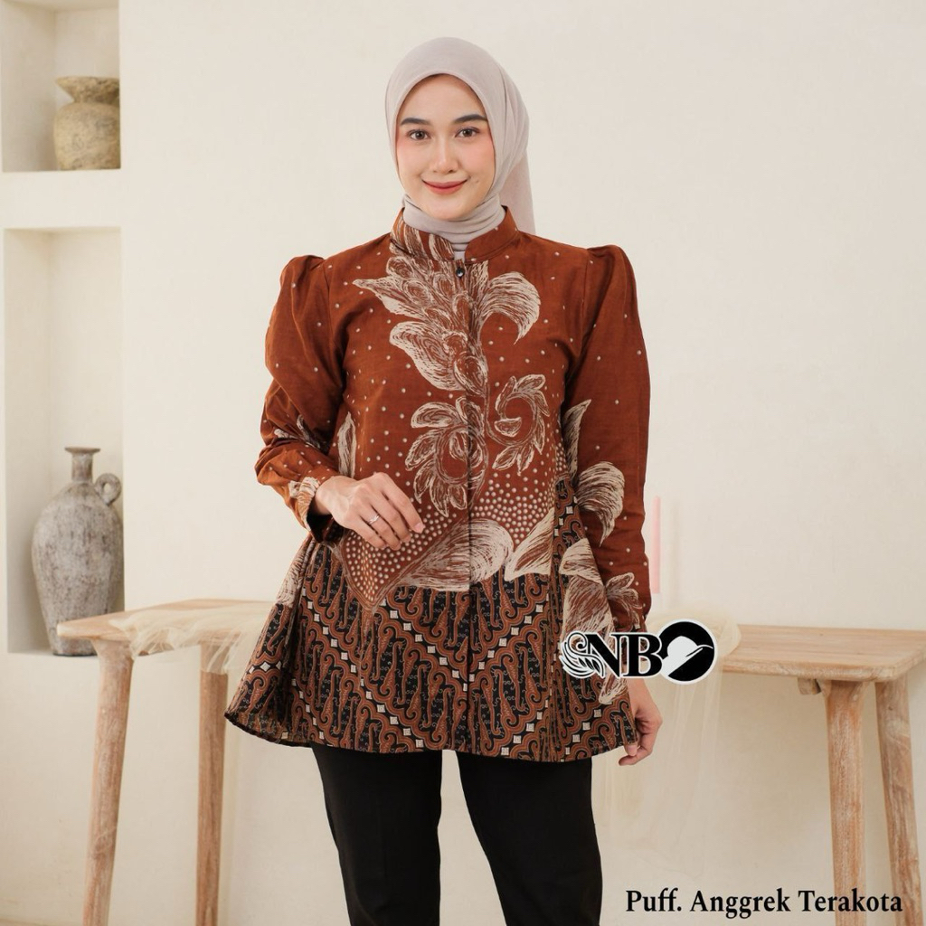Baju Atasan Batik Wanita Blouse Terbaru Batik Kerja Wanita Lengan Balon Batik Seragam Kerja Kantor Seragam Modern