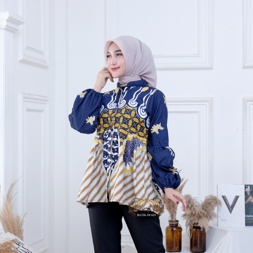Batikdo.id Atasan Baju Batik Wanita Jumbo Modern Blouse Kerja Lengan Balon M L XL XXL