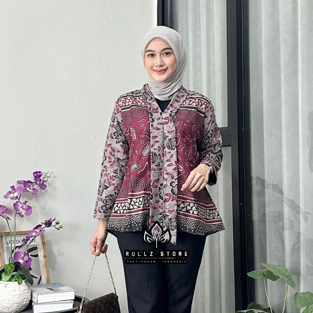 Blouse Batik Wanita Atasan Batik Wanita Terbaru Baju batik Modern dengan motif Tradisonal Wanita lengan Panjang Katun Hi