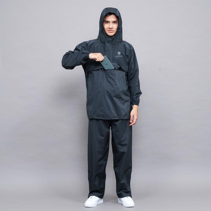 [BISA ] Asadtsu Jas Hujan Saku Kangguru Bahan Tebal Setelan Dewasa Pria Wanita Hijau Merah Zipper