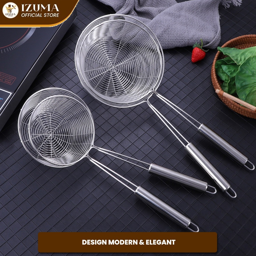 [Star] IZUMA Saringan Mangkuk Stainless Steel Serokan Mie Penyaring Bakmi Tahan Panas Anti Karat Alat Dapur Praktis