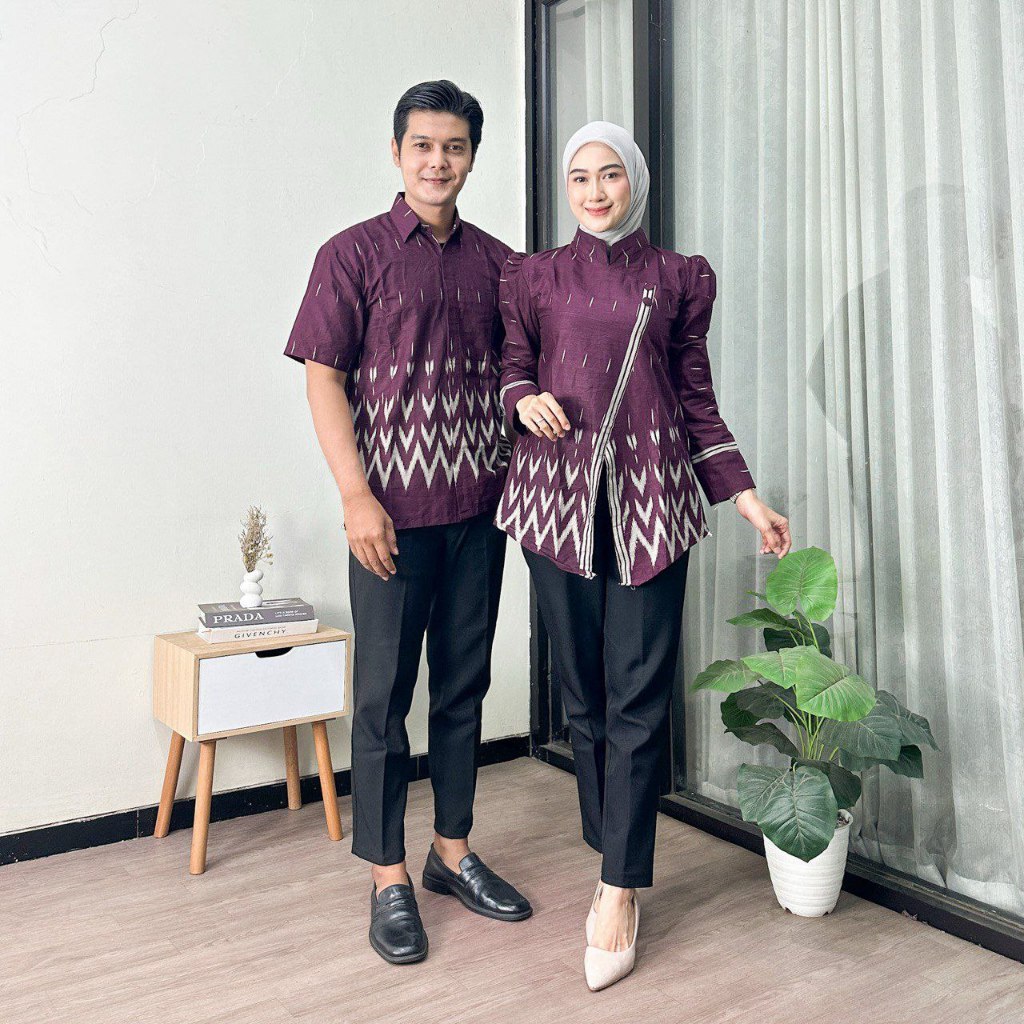 Baju Batik Couple Pasangan Kekinian Motif Puff Azura Baju Batik Wanita Modern Kantor Elegan Batik Jumbo