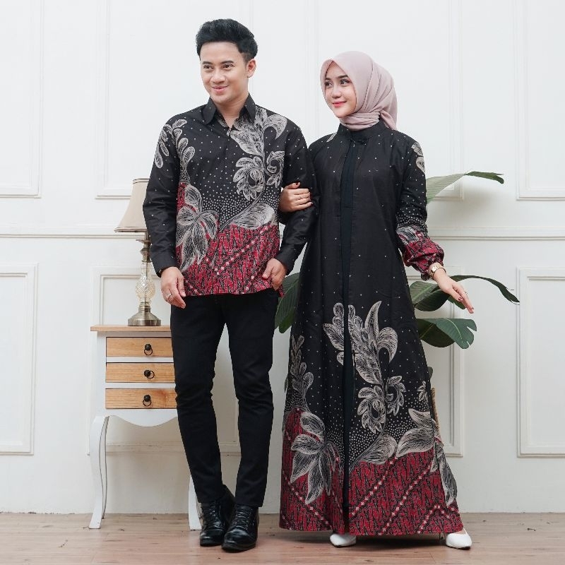 Batik Couple Keluarga modern terbaru motif Anggrek Hitam Matt Katun premium
