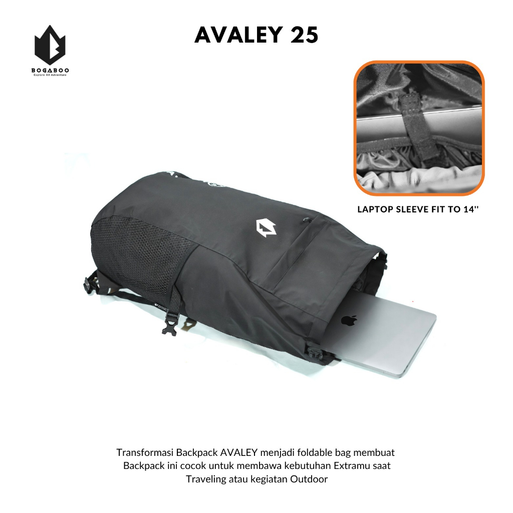 BOGABOO Backpack AVALEY 25 Liter Ultralight Waterproof FULL SEALER - DRYBAG - Tas Daypack - Tas Laptop Portable - Tas R