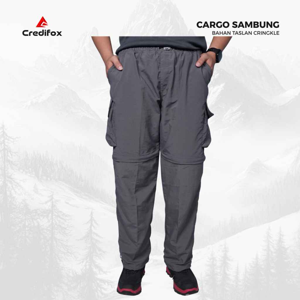 celana gunung pria CREDIFOX Celana Cargo Sambung Panjang Pria Bahan Taslan Cringkle - Celana Hiking - Celana Outdoor