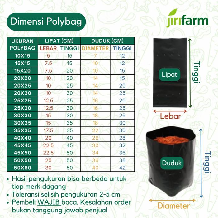 JIRIFARM - Paket Polybag 15 20 25 30 35 40 Kecil Besar Polibag untuk Tanaman Sayuran dan Buah - 10 [10x15] (30 pcs)