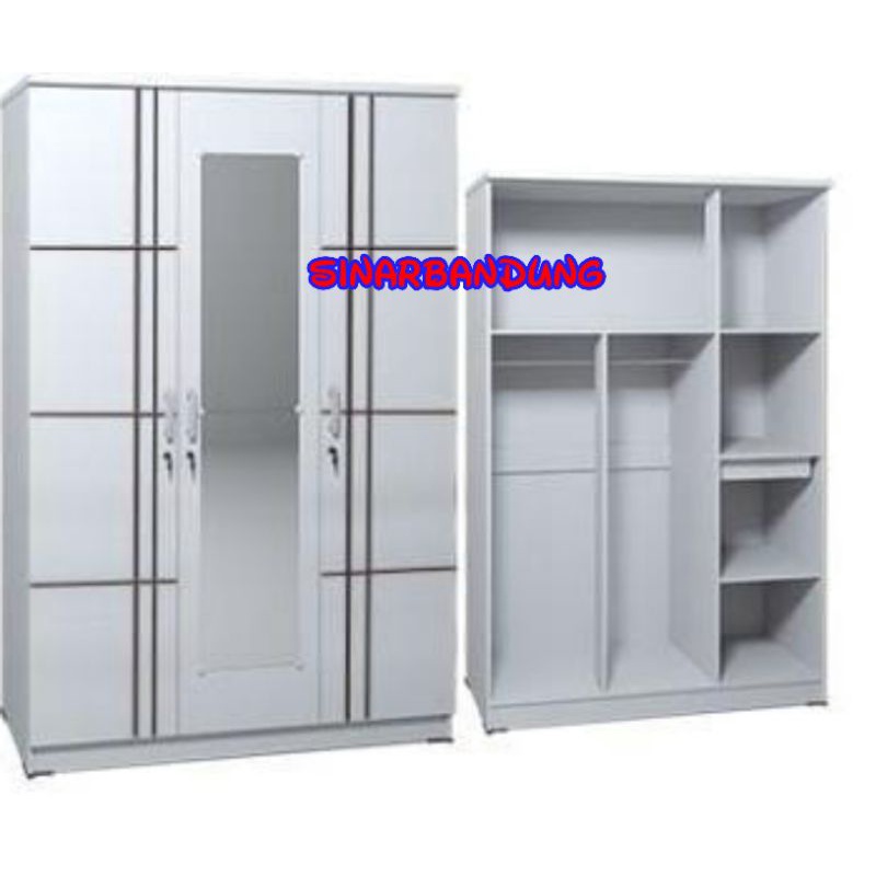 LEMARI PAKAIAN 3 PINTU PUTIH MINIMALIS BANDUNG