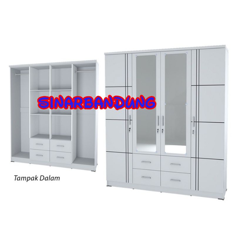 KAMAR SET LEMARI PAKAIAN 4 PINTU FULL PUTIH/ LEMARI PAKAIAN GANTUNG GAMIS