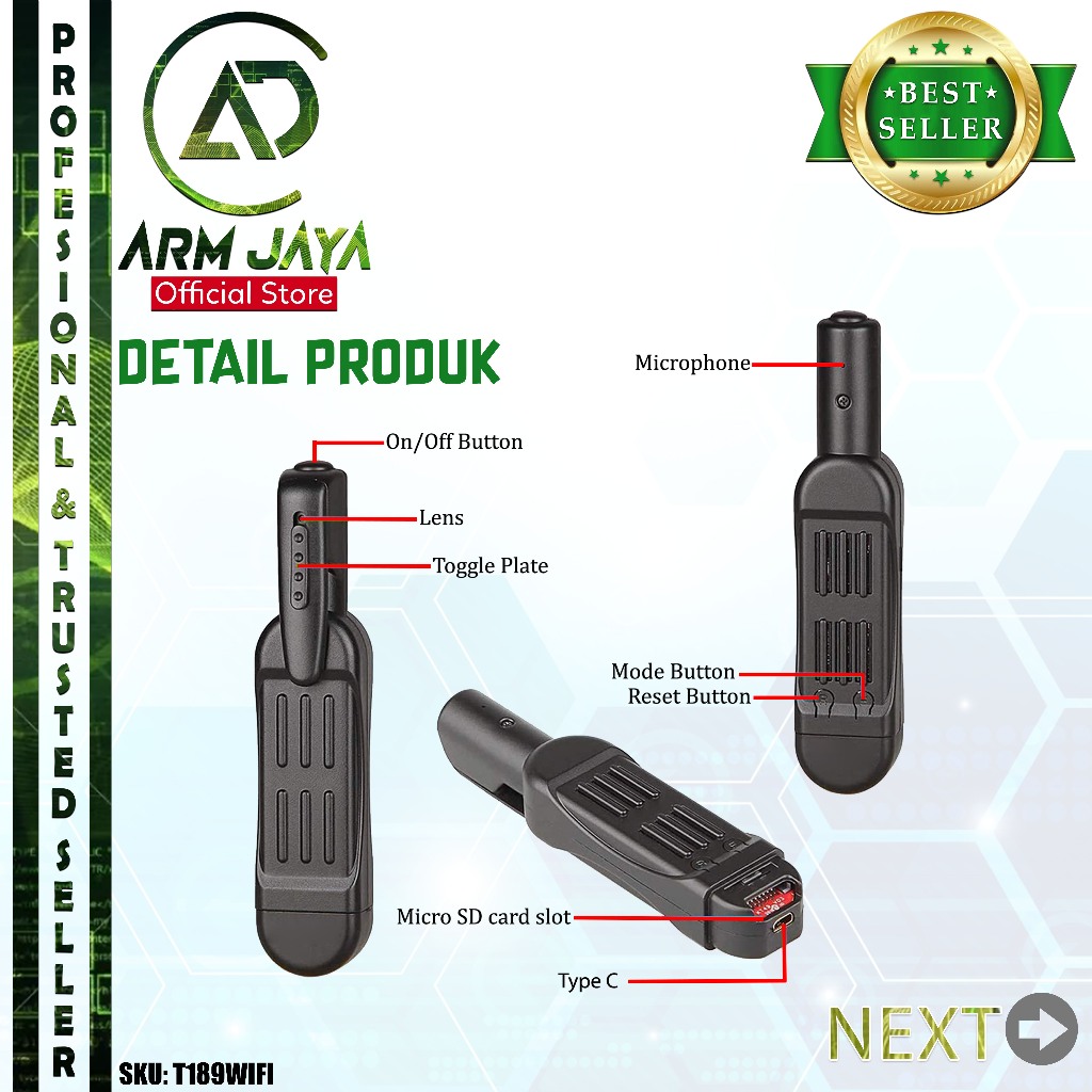 Armjaya Camera Mini Pen Clip T189 Wifi Kamera Saku T189WIFI Hidden Spycam Camera Unik Pena Pulpen