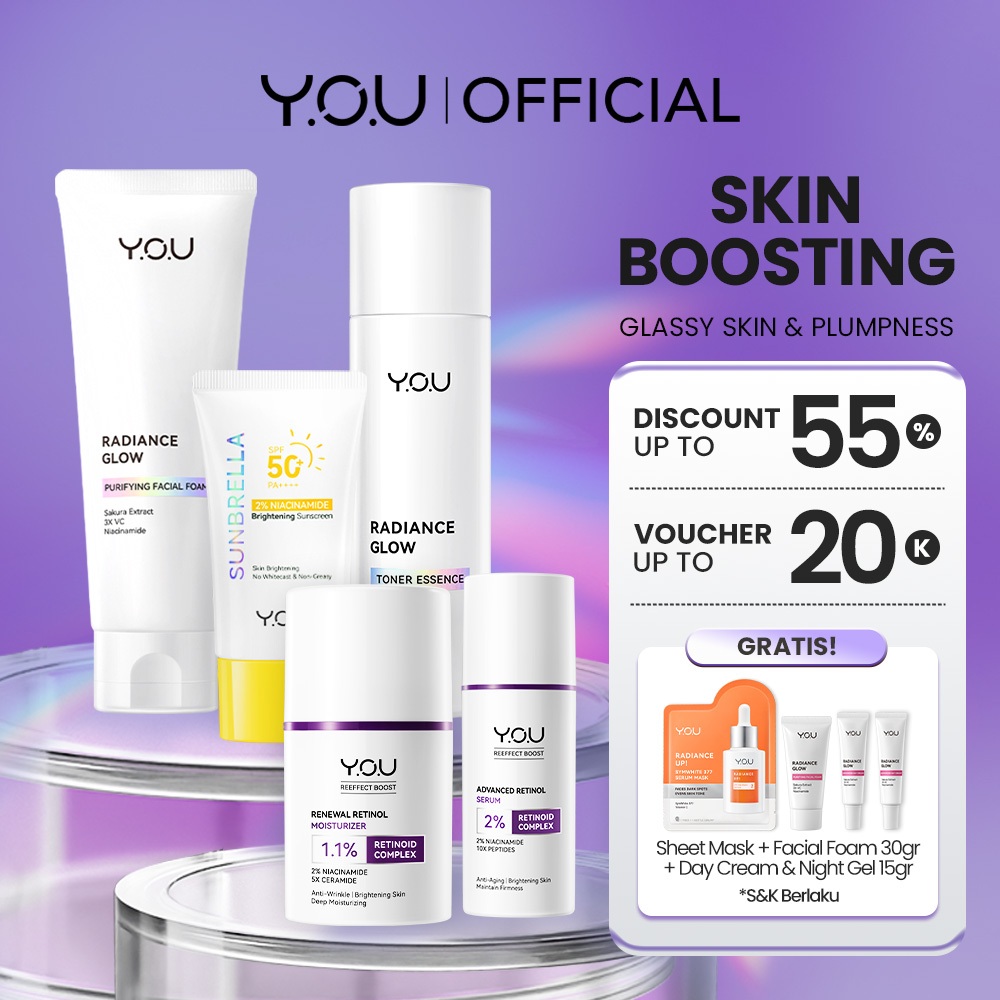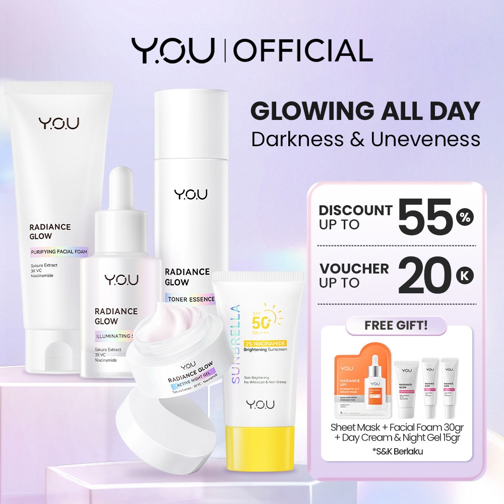 YOU 5in1 Paket Skincare Set 5pcs Radiance Glow, Radiance Up, Acneplus, Peeling Serum, Retinol, Sunbrella