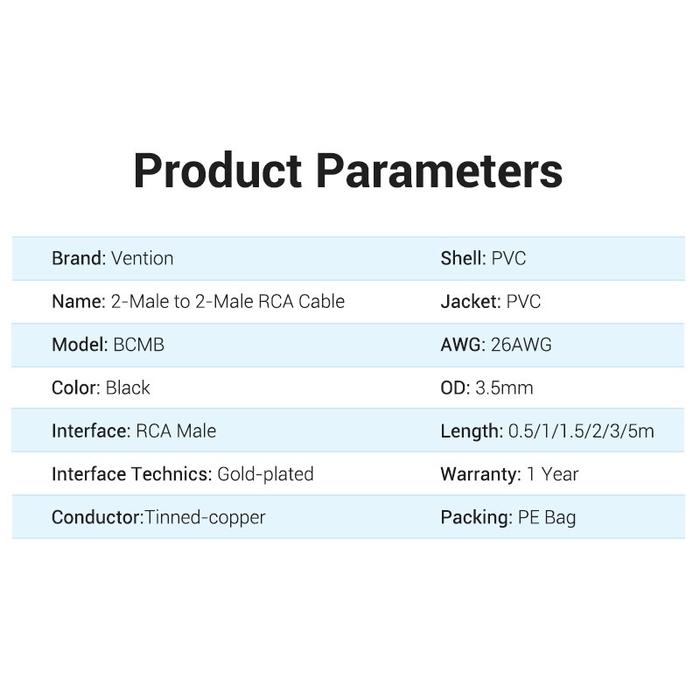VENTION KABEL AUDIO RCA STEREO MALE TO MALE , 3 METER 3M SPEAKER g0ldd - BCMBI 3 METER