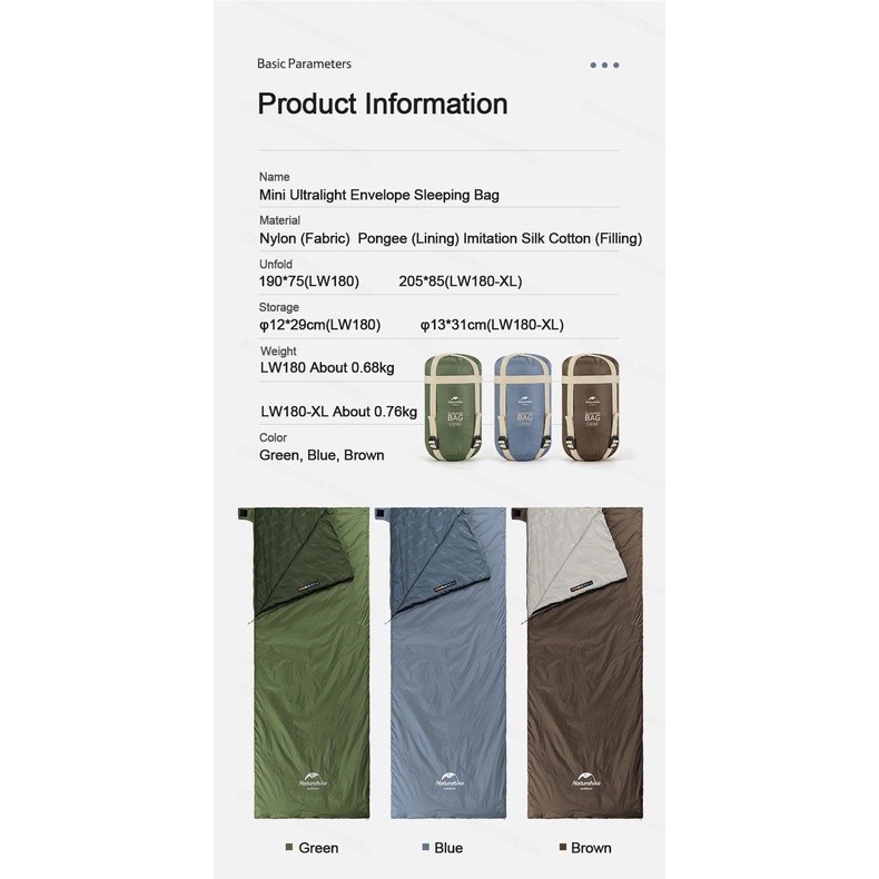 Naturehike NH21MSD09 LW180 Sleeping Bag Hangat 15⁰C