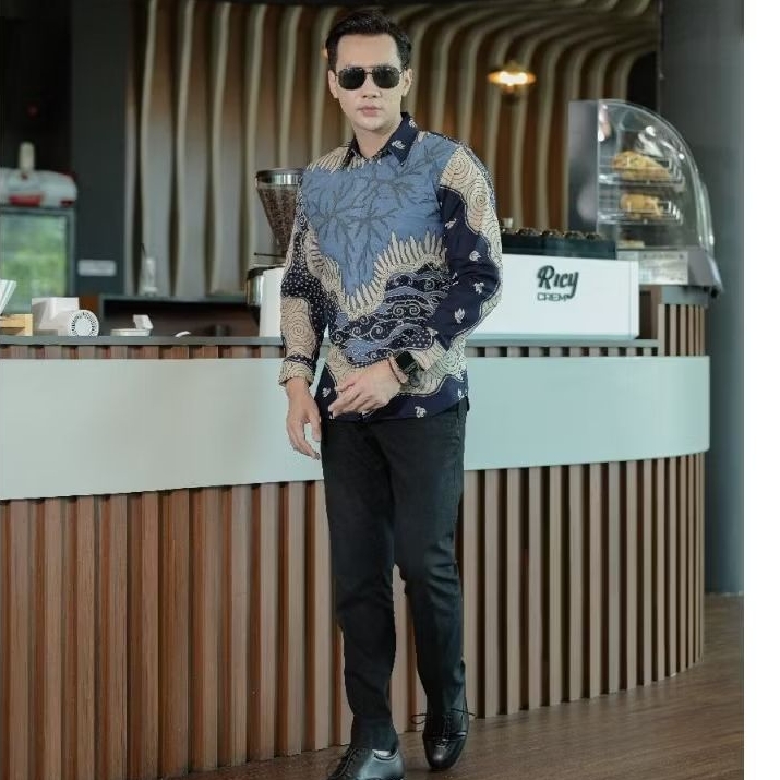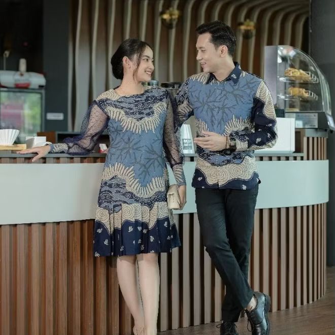 Batik Pasangan Couple Dewasa Motif DEFINA Pakai Lapis Trikot Atasan Batik Hem Dres