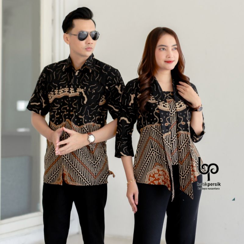 Atasan Batik Couple Kutubaru Plum Kemeja Pendek Seragam Kantor