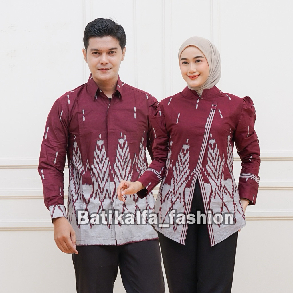 Batik Couple Terbaru Atasan Wanita Model Kebaya Janggan Lengan Puffy Bahan Katun Premium Motif Songket
