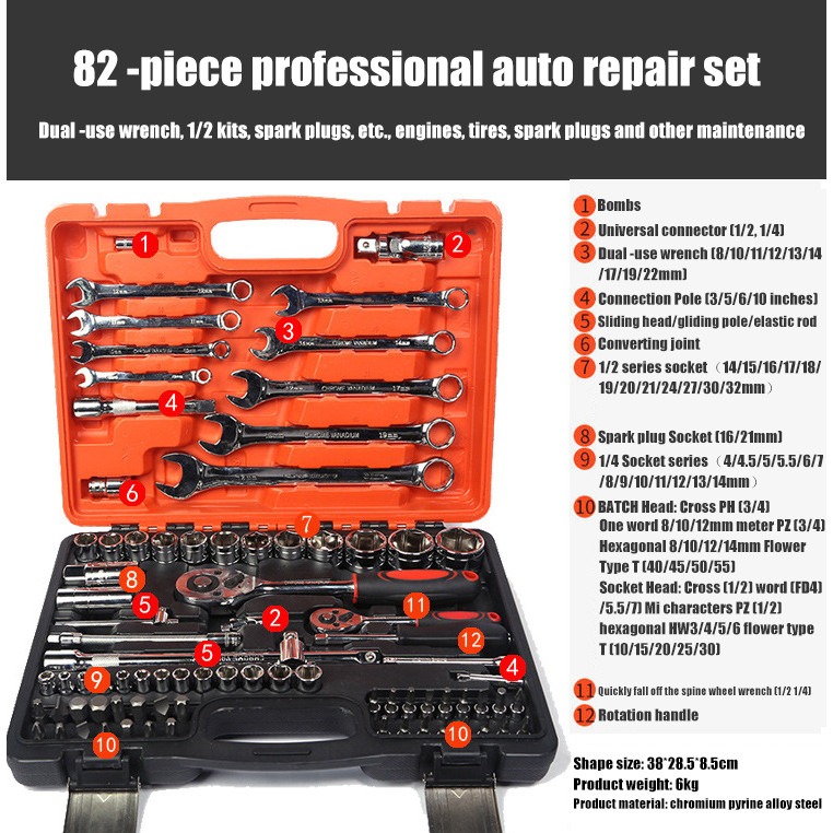 Kunci set lengkap 82 PCS Kunci Shock Set Tool Kit Set Repair Tool Set alat mobil Set Alat Perbaikan Ruman