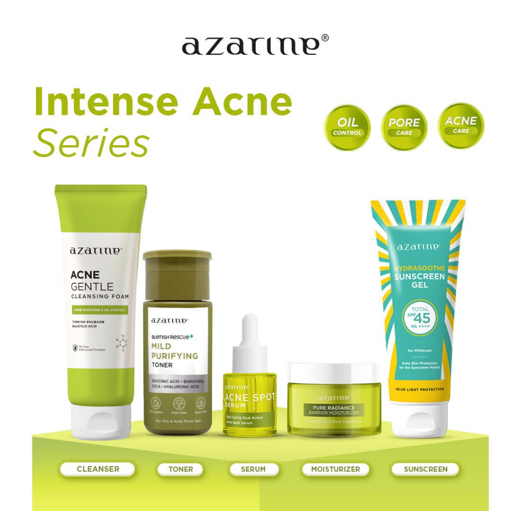 Azarine Intense Acne Series [5 pcs] Paket Skin untuk Mengatasi Jerawat dan Acne Prone Skin with Sunscreen