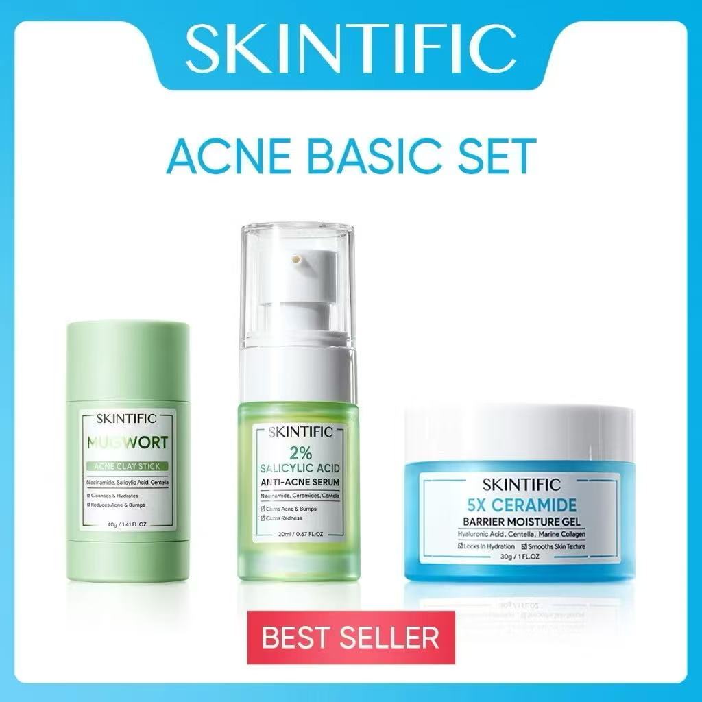 SKINTIFIC 4PCS Paket-Skincare Set | Acid Peeling Solution Serum 30ML + 5X Ceramide Barrier Moisturizer Gel 30g + Niacina