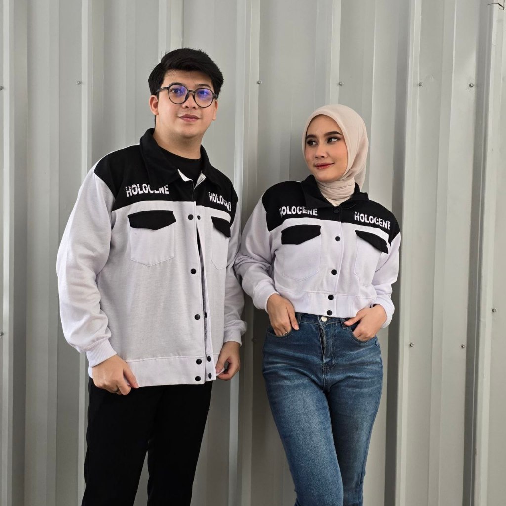 isi 2 pcs Jaket Sweater Couple Pasangan Holocene Jacket + Crop Top Sweter Kapelan Hitam Putih