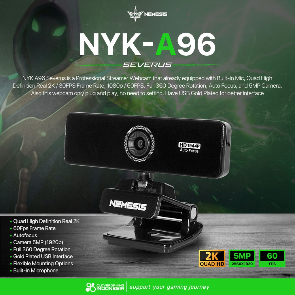 NYK Nemesis A96 Severus 2K QHD Streaming Gaming Webcam with Microphone