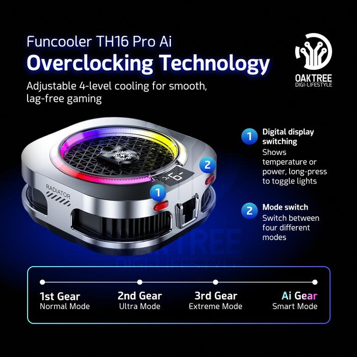 Oaktree Funcooler TH16 Pro Ai Fan Cooler Radiator Pendingin HP Cooling Fan Gaming