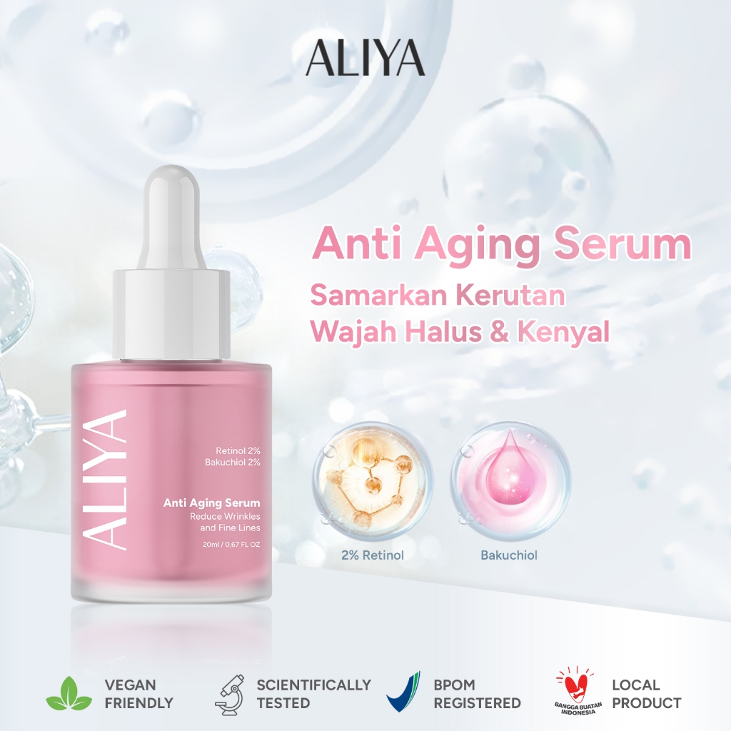 Aliya Anti Aging Serum – Retinol + Bakuchiol, Kencangkan & Haluskan Wajah, Anti Kerutan untuk usia 25+ 20ml