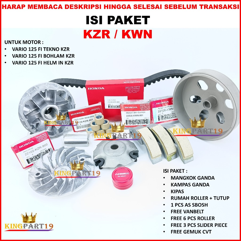 Paket Lengkap Kirian Mangkok Ganda Kipas Rumah Roller Vanbelt CVT Vario 125 FI Tekno Bohlam KZR